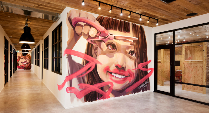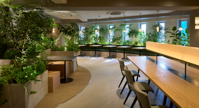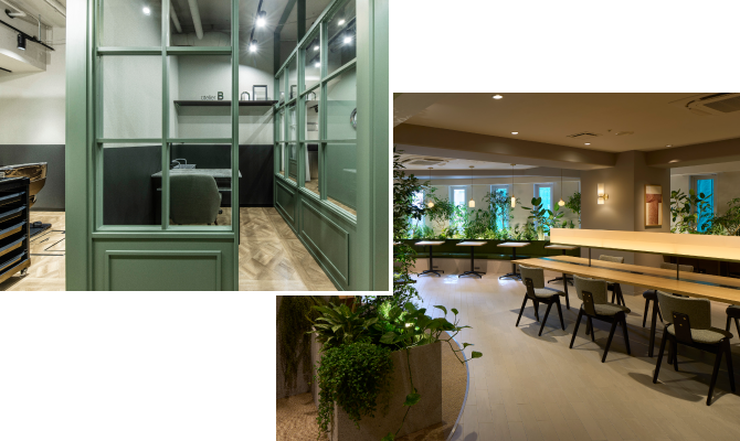 アートと豊かな緑が溶け込んだデザイン空間が、ビューティシャンと訪れるすべての人に心地よさを届け、