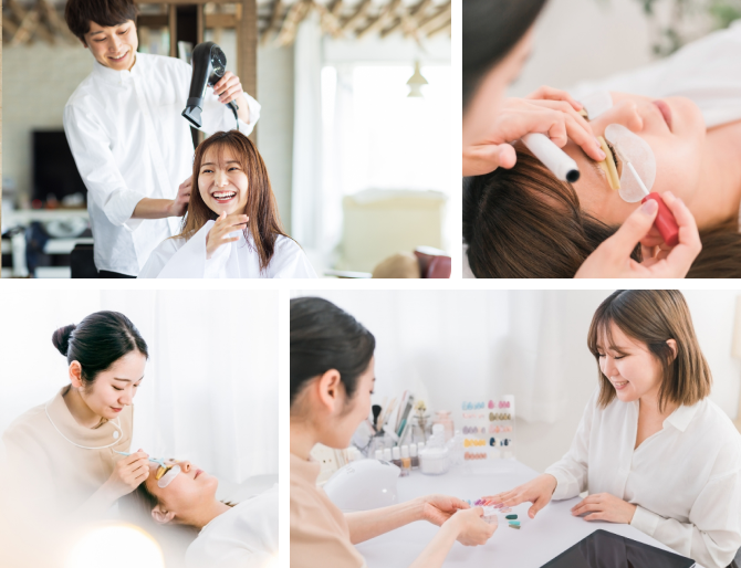 また、美容師、ネイリスト、アイリスト、 セラピストなど各ビューティシャンが必要な設備とプランをご用意しています。 -